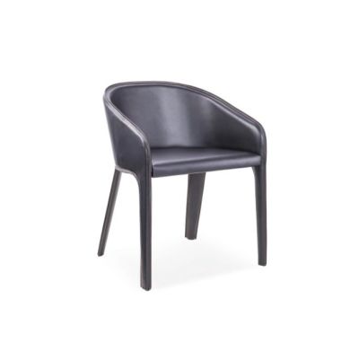 The Antonia Arm Chair offers a sleek and contemporary take on classic comfort. Featuring a gently curved backrest and integrated arms, this chair is upholstered in smooth black faux leather with a seamless silhouette. Its solid, tapered legs and wraparound frame are crafted for durability and a refined aesthetic, making it a perfect addition to modern dining rooms, office spaces, or stylish lounge areas. With a minimalist design and a focus on ergonomic support, the Antonia Chair blends form and function effortlessly.